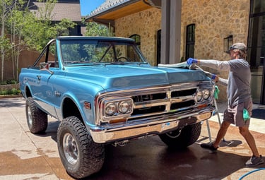 Exterior- Hand wash and wax, rims and tires cleaned and dressed .